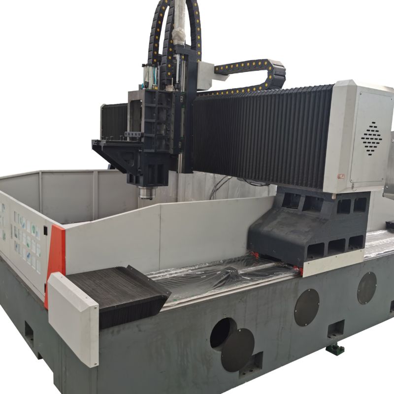 Es besteht hauptsächlich aus einem Arbeitstisch, einem beweglichen Portal, einem beweglichen Sattelschleifer, einem Bohr- und Fräse-Kopf, einer automatischen Schmiervorrichtung, einer Schutzvorrichtung,mit einer Leistung von mehr als 50 W und, ein numerisches Steuerungssystem, ein elektrisches System und andere Komponenten, unterstützt und geleitet durch Rollführerpaare und angetrieben durch Präzisionsschraubenpaare,Das Werkzeugmaschine verfügt über eine hohe Positionierungsgenauigkeit und wiederholte Positionierungsgenauigkeit.
